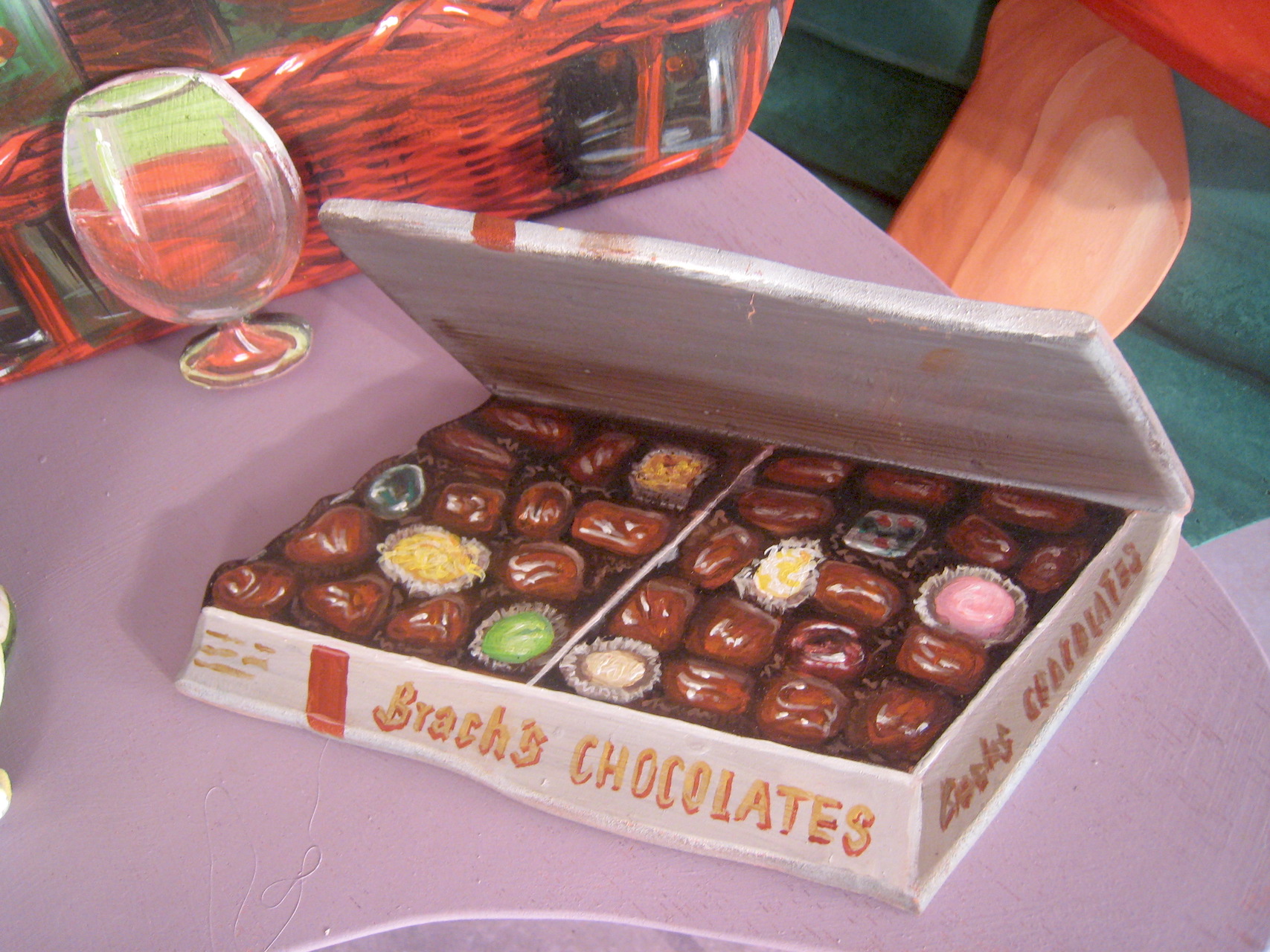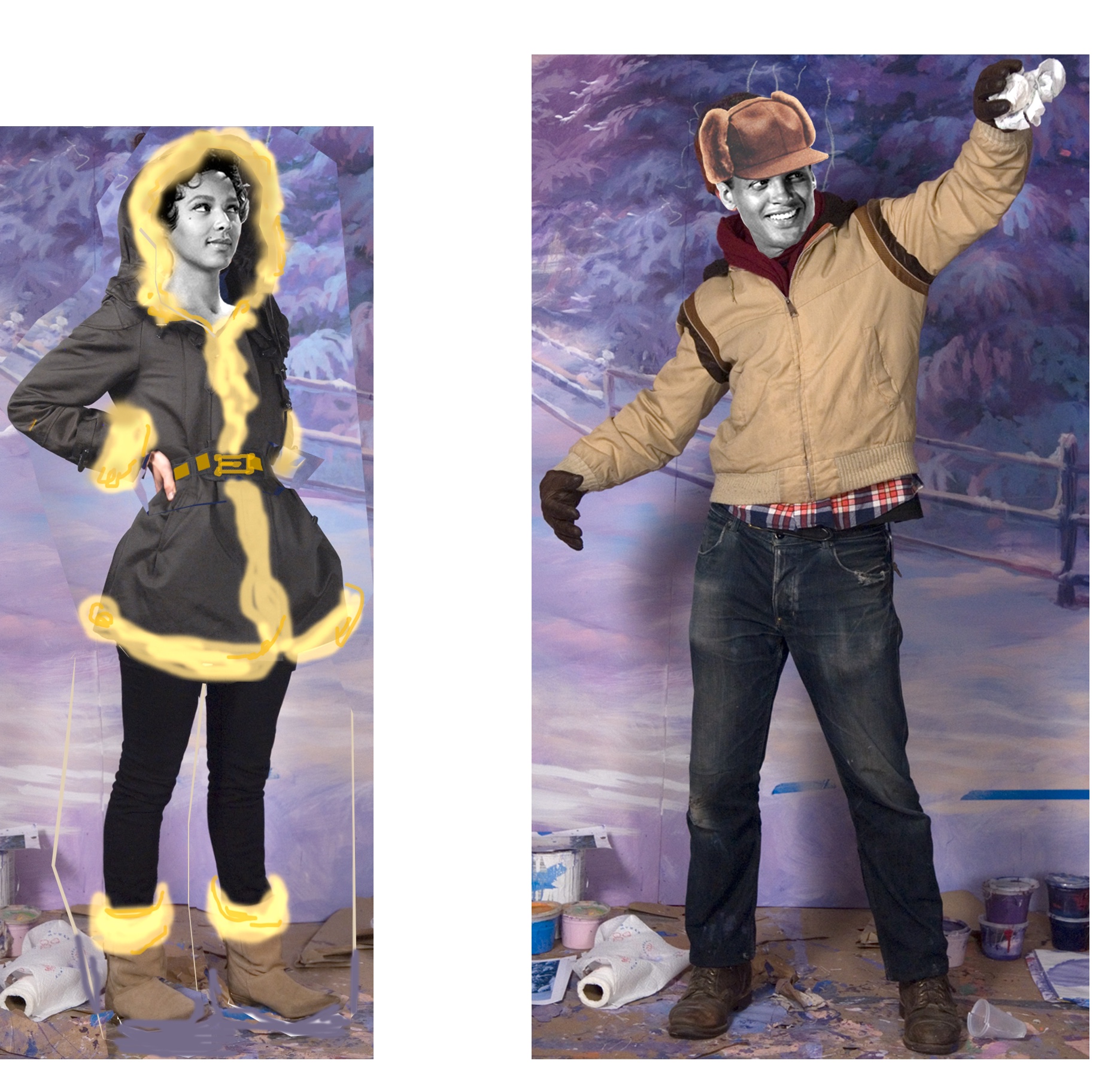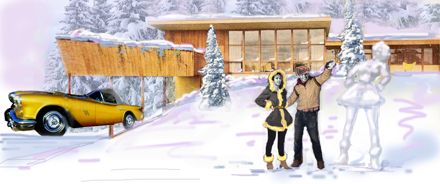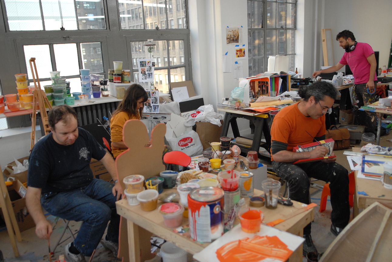 Finally, the artists set about painting, in an illustrative style of the 50’s, each of over 500 pieces that made up the separate sets full of objects, furniture, backdrop murals, and dozens of portraits.