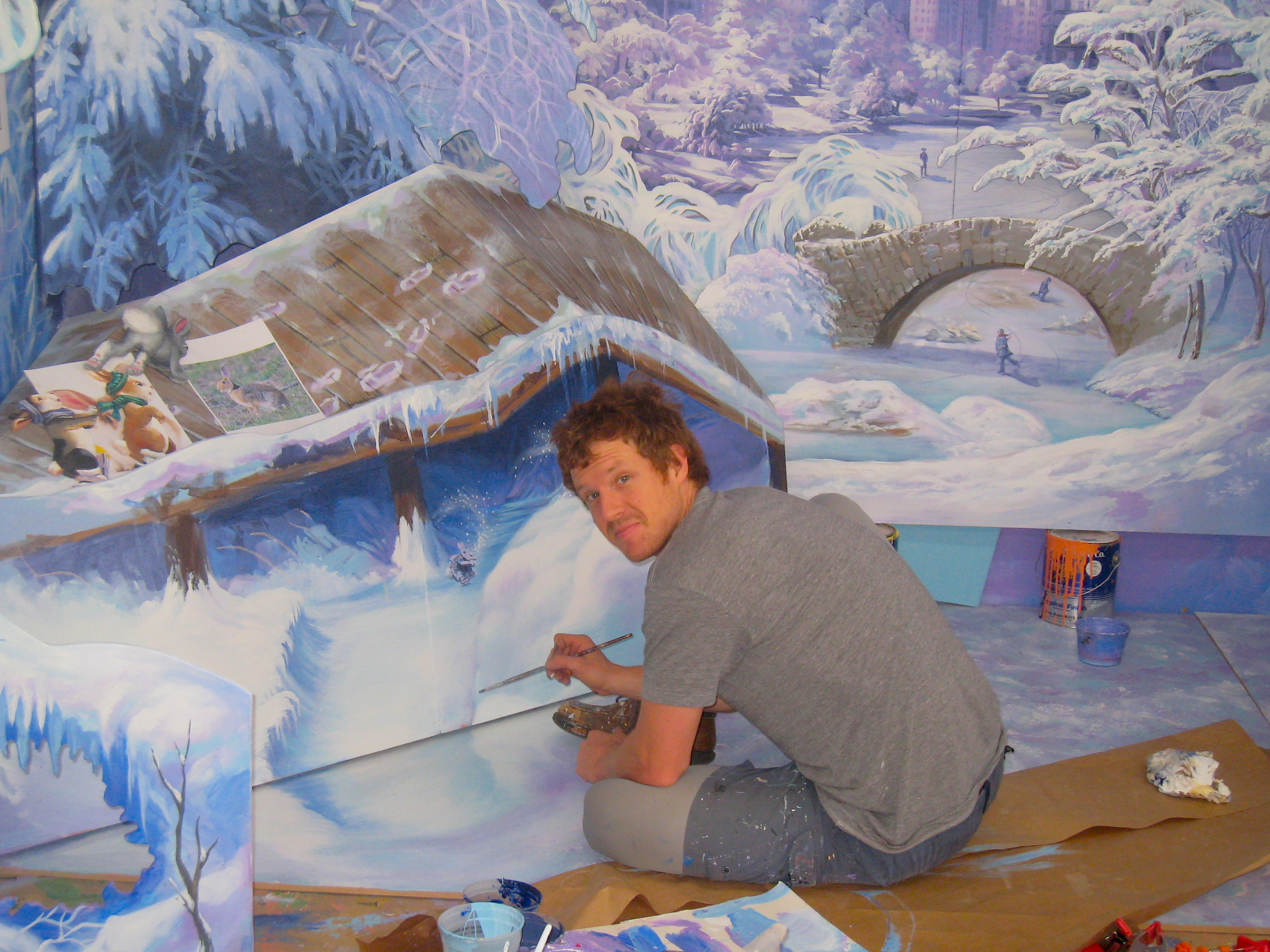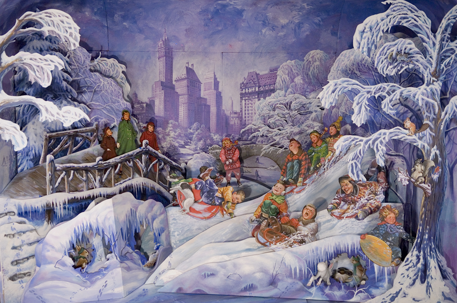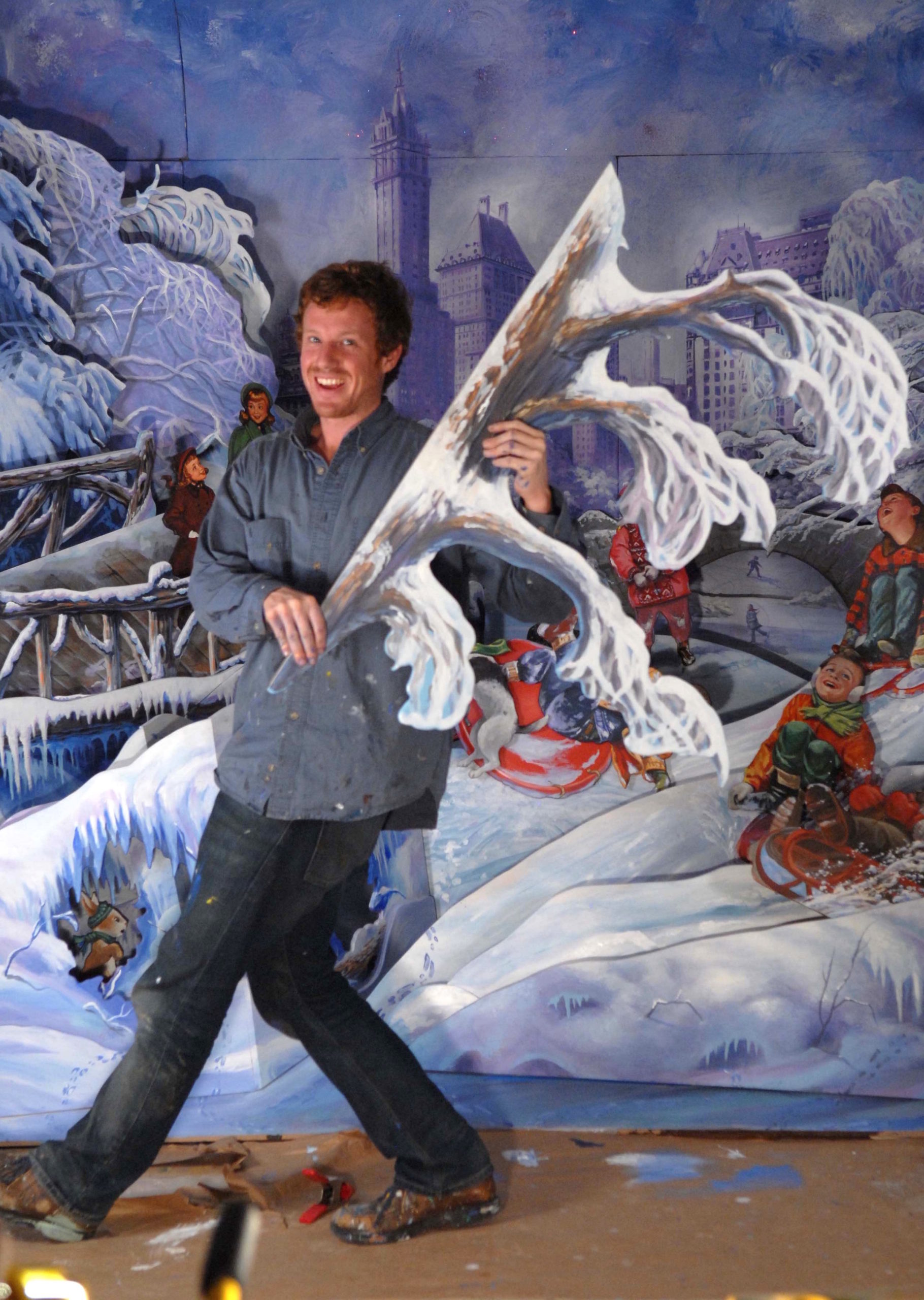 In 2008, Head of Bloomingdale’s Window Display Director, Harry Medina, asked Khuzami Studio to produce their famous Holiday Windows. Vicki Khuzami immediately scouted the city to assemble a super team of 14 talented artists. The schedule was tight, and every inch of the window sets was to be hand-painted…no mannequins, costumes, or props would be used.